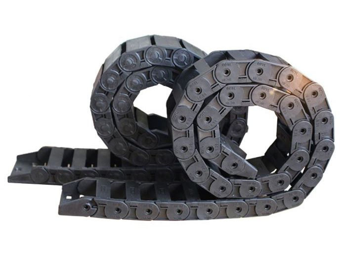 內(nèi)寬選擇較粗的電纜,油管,氣管,水管等,其外徑之和作為拖鏈內(nèi)寬的參考,并且留有至少105寬度。