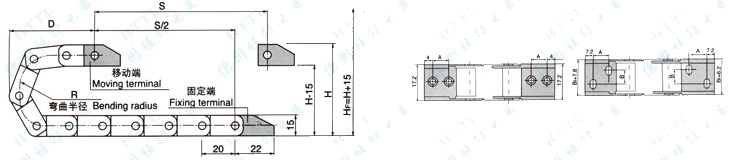 型號 | 內腔(高x寬) | 外徑(高x寬) | 回轉半徑(R) | 型式 | 對應接頭孔距(mm) |