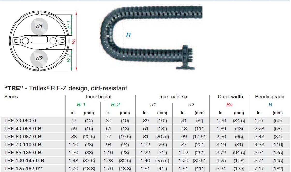 首先來看我們當前使用的TRE-100型塑料拖鏈的數據: