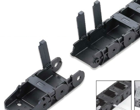 閔彬管業制作的拖鏈不會用100%尼龍料,因為用100%尼龍料制作出來的拖鏈易碎,在運行過程中容易折斷,我們使用是70%的尼龍66+30%的玻纖,這樣制作出來的拖鏈不但增強增韌效果好,而且外觀烏黑油亮,不但大大的提高了拖鏈的使用壽命,而且在拖鏈的美觀上也有了明顯的改善。